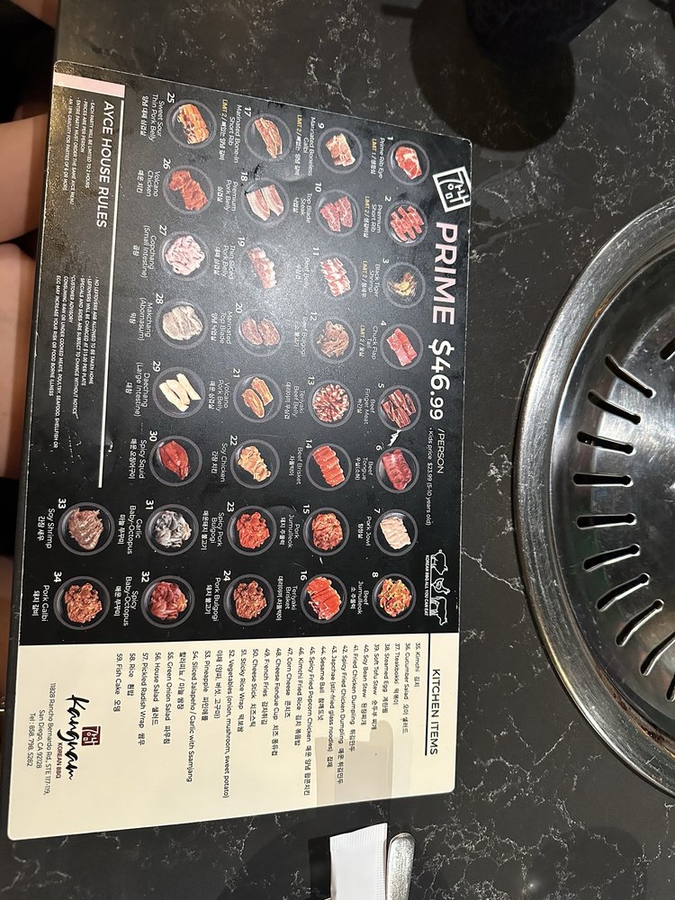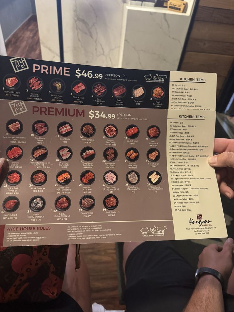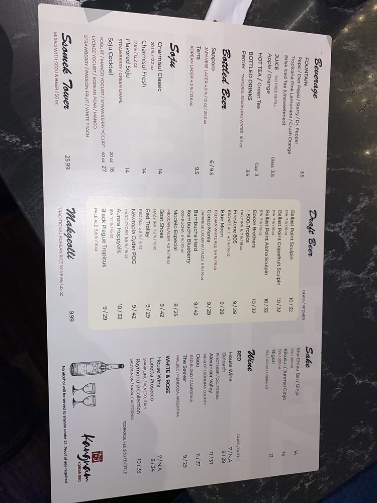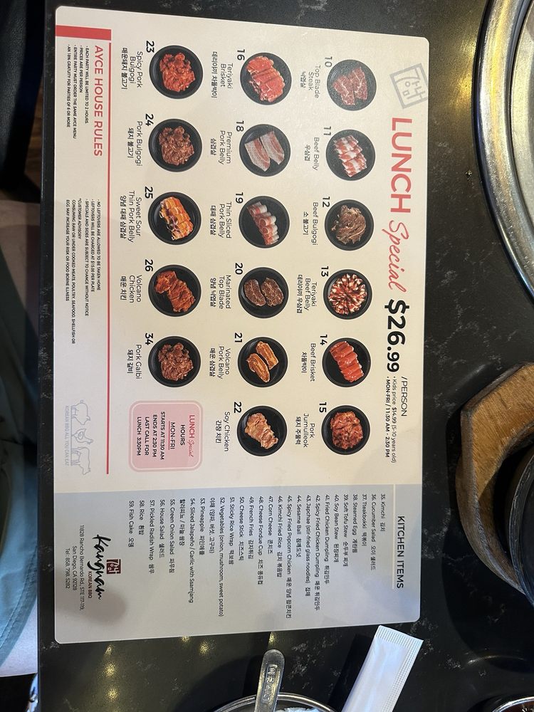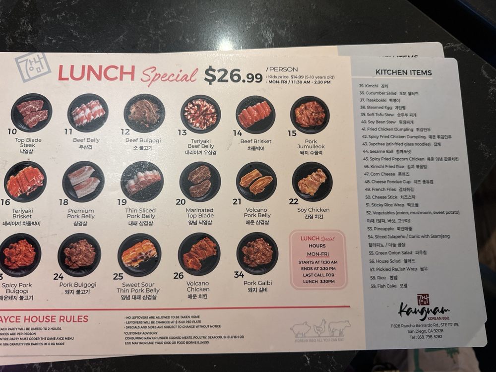 Kangnam Korean BBQ Menu